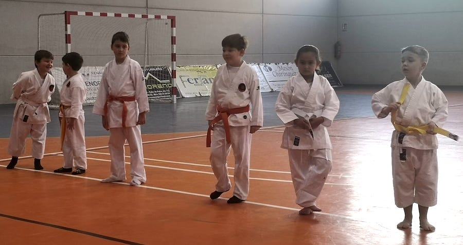 La asociación de artes marciales llevó a cabo en el pabellón de Roche y su entorno una jornada muy especial en la que los familiares de los alumnos disfrutaron de una exhibición que reflejó la buena evolución experimentada por los karatecas y de una amena jornada de hermandad.