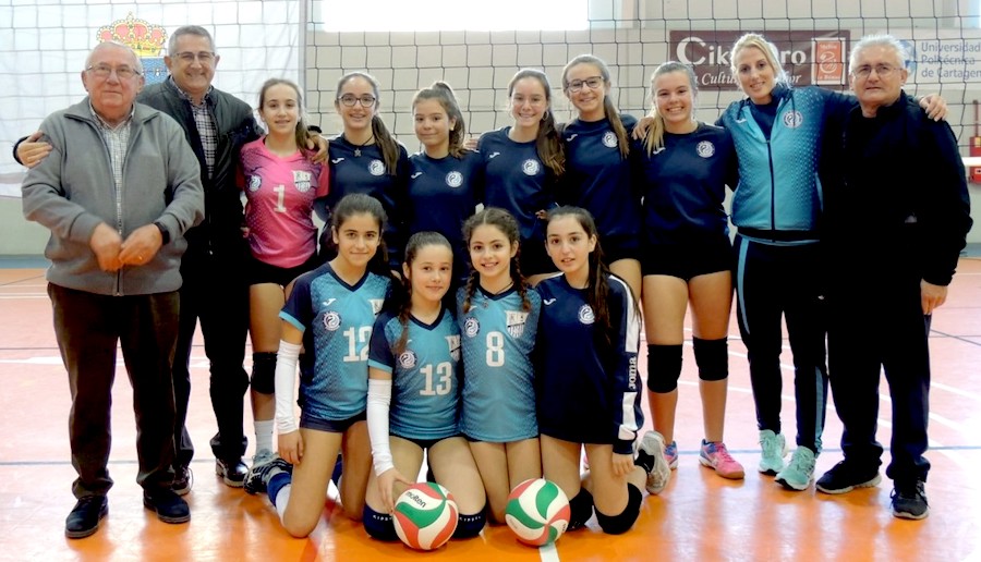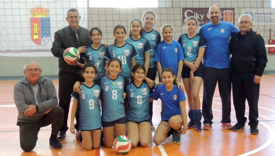 En las fotos se observan a jugadoras y técnicos con el alcalde de La Unión, el concejal de Deportes y el alcalde pedáneo de Roche.