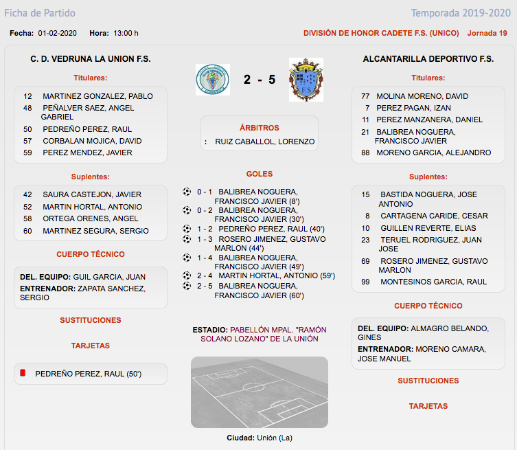 División de Honor cadete: CD Vedruna, 2 - Alcantarilla, 5