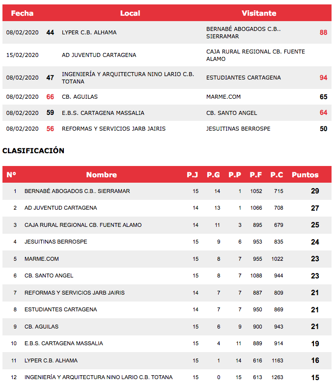 El equipo júnior del CB Sierramar defiende su liderato con autoridad al vencer en Alhama por 44-88. Del resto de equipos federados, cuatro victorias y dos derrotas en este pasado fin de semana.