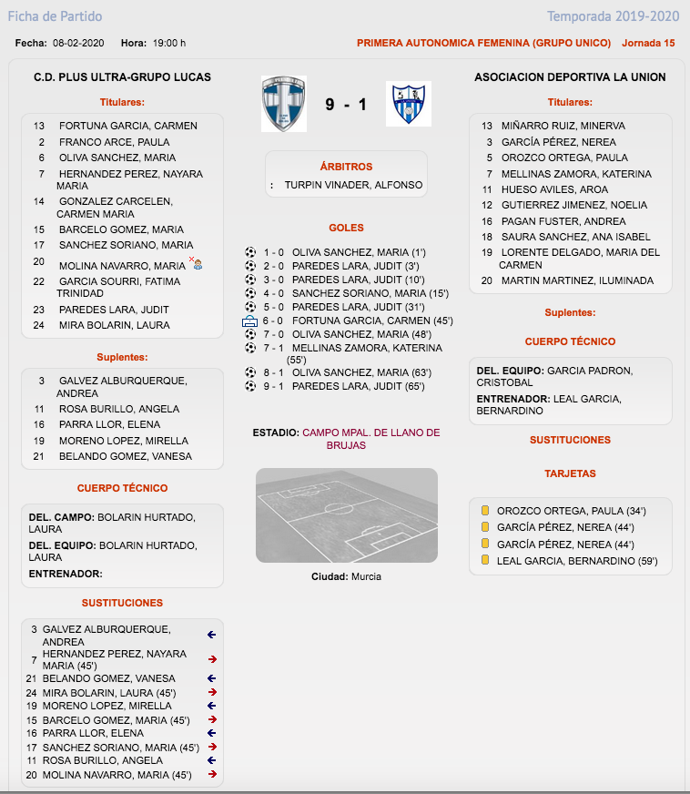 El equipo de la Liga Local de la AD La Unión sigue líder tras vencer en el campo de Los Belones por 1-6, mientras que el conjunto de primera autonómica federada fue goleado en su salida a Llano de Brujas por el Plus Ultra (9-1).