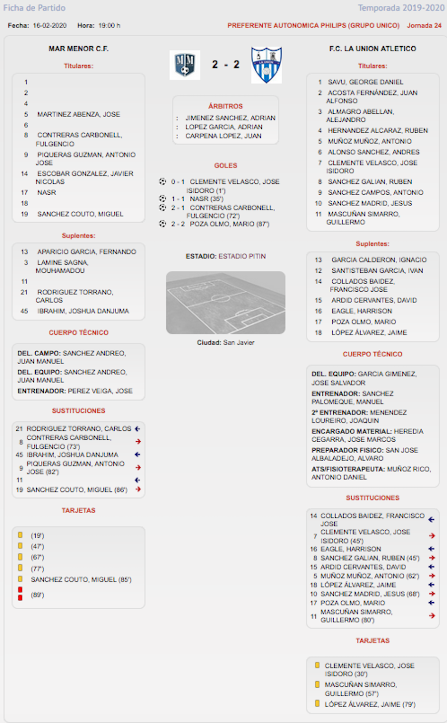 El equipo unionense se adelantó en el marcador en el primer minuto de juego, pero el Mar Menor remontó y fue en los últimos momentos del partido cuando llegó la igualada.