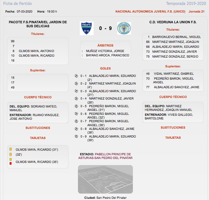 Nacional autonómica juvenil: FS Pinatar, 0 - CD Vedruna, 9