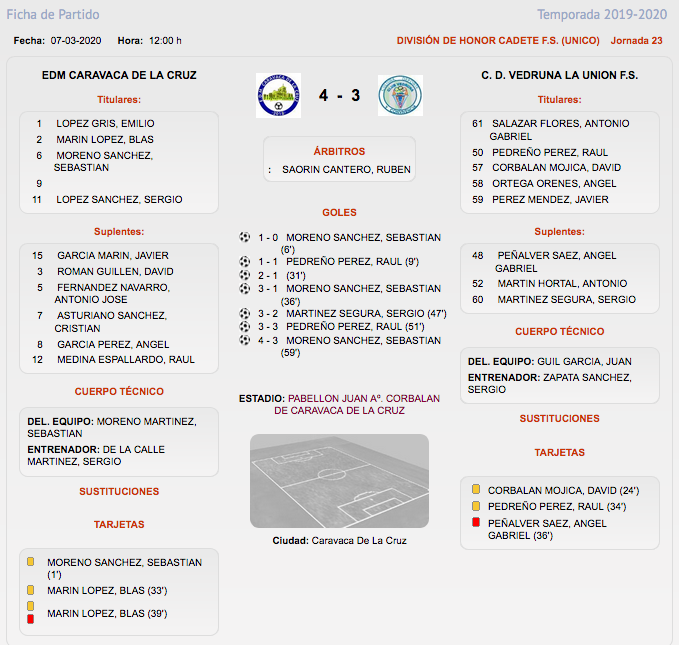 División de honor cadete: EDM Caravaca de la Cruz, 4 - CD Vedruna, 3