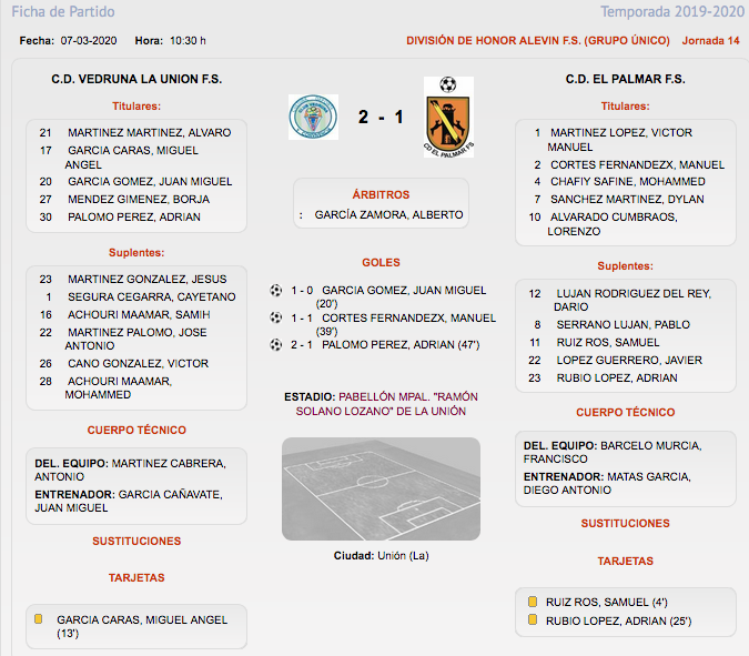 División de honor alevín: CD Vedruna, 2 - CD El Palmar, 1