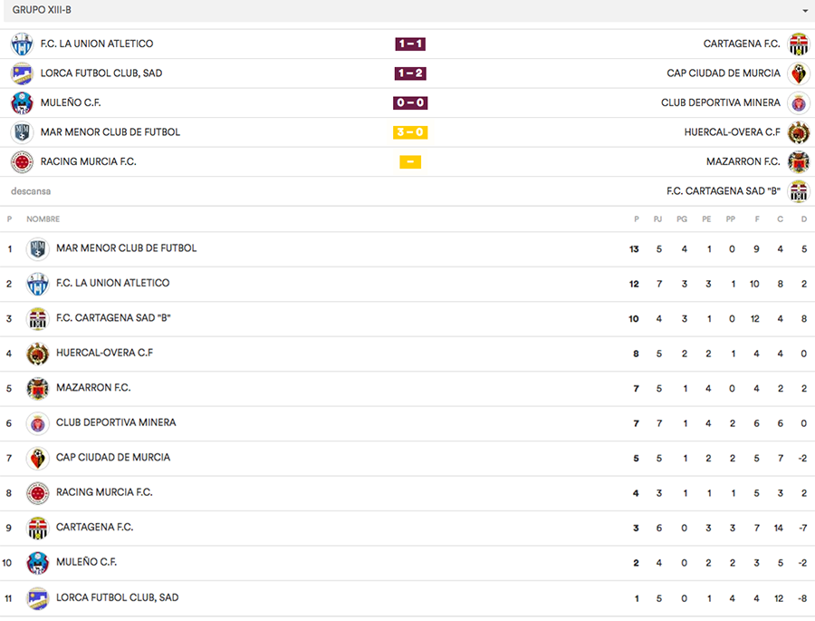 Partido de la jornada 7 del subgrupo B del Grupo XIII de Tercera División de fútbol disputado en el polideportivo Antonio Sánchez de La Unión. Quinín, al estar sancionado Palomeque, ejerció como entrenador local desde el banquillo.