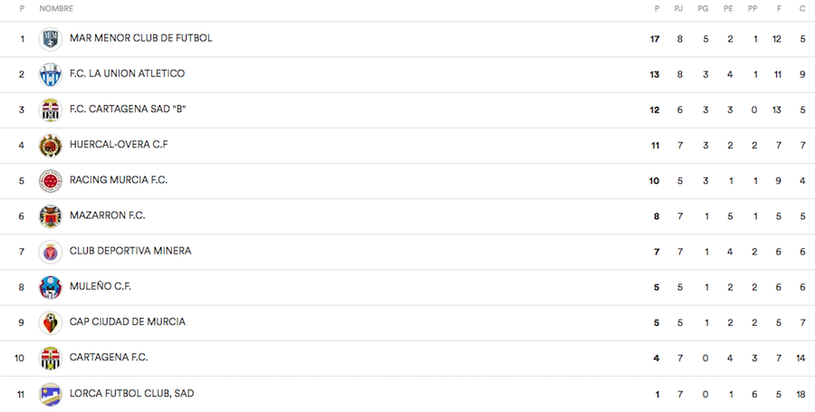 La próxima jornada, La Unión Atlético descansará y se enfrentará el 20 de diciembre en la jornada 9 al Mar Menor en campo local.