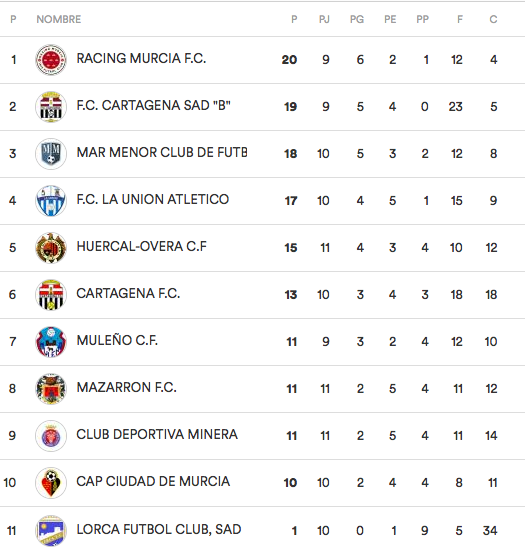 La Unión Atlético está en esa lucha desde que comenzó la temporada y el camino apunta a que será aún más duro en la segunda vuelta, en la que cuatro equipos son los mejor posicionados, pues Huercal-Overa y Mazarrón parecen desinflarse. Rácing Murcia, FC Cartagena B y Mar Menor son los que ocupan esas ansiadas plazas, estando en la puerta el equipo unionense.