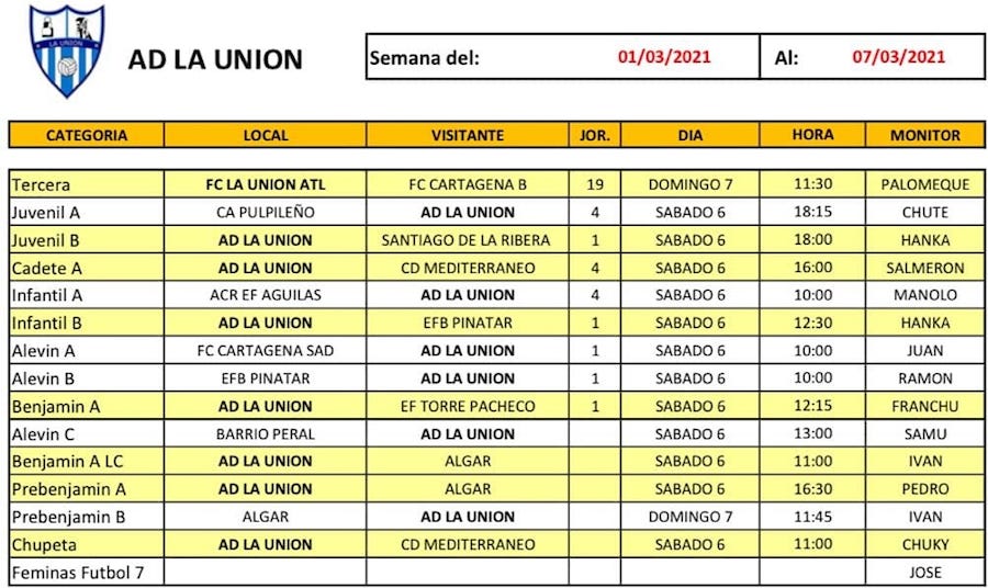 Los equipos de baloncesto del CB Sierramar, de fútbol sala del CD Vedruna y de fútbol base de la AD La Unión regresan a la competición tras el segundo paréntesis generado por el coronavirus. Por su parte, en Tercera División, La Unión Atlético afronta un partido crucial frente al FC Cartagena B en la matinal del domingo en casa.
