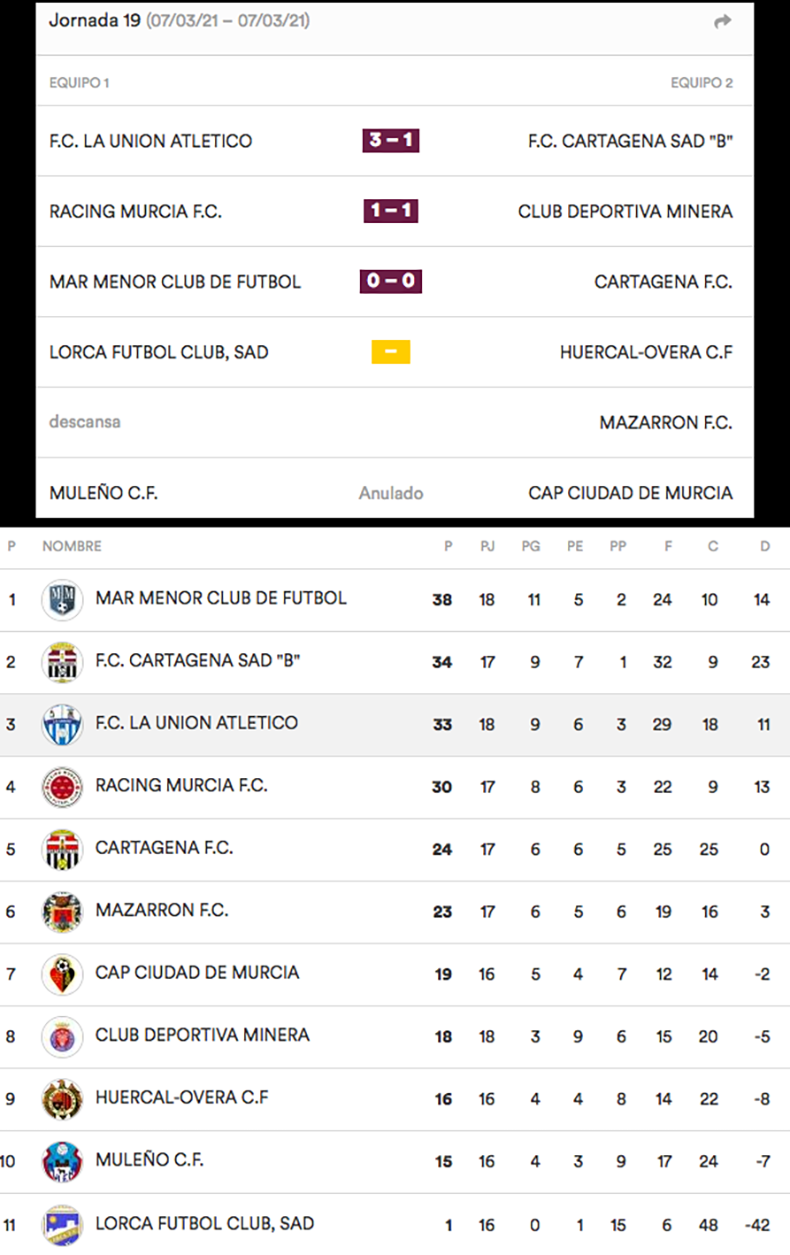 De esta manera, La Unión mete miedo a los de arriba y se coloca en los puestos altos de la tabla.