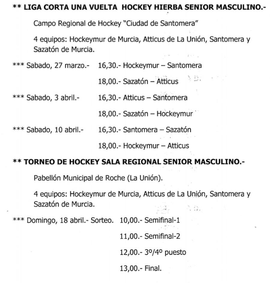 Los otros equipos que disputan la competición sobre Hockeymur y Sazatón, ambos de Murcia, y Santomera.