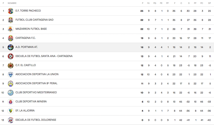 Con este marcador, la AD Portmán Athlétic (que esta temporada se ha estrenado en primera cadete tras ascender la pasada campaña) sigue dando un alto nivel frente a los equipos de la zona alta, pues también empató en los feudos de FC Cartagena y Cartagena FC. Además, el conjunto es difícil de batir, com refleja que sólo lleva una derrota tras nueve jornadas, siendo superado en este capítulo sólo por el intratable líder, Torre Pacheco.