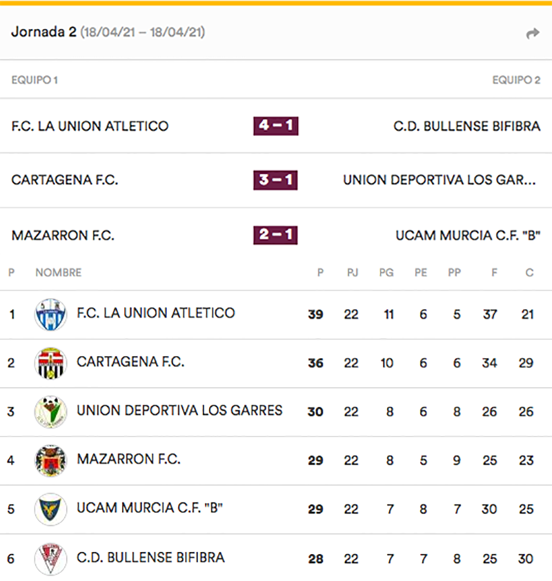 Esta victoria y las derrotas de Los Garres y del UCAM Murcia B pone muy factible la clasificación de La Unión Atlético para las eliminatorias de ascenso cuando quedan cuatro jornadas para acabar esta fase.