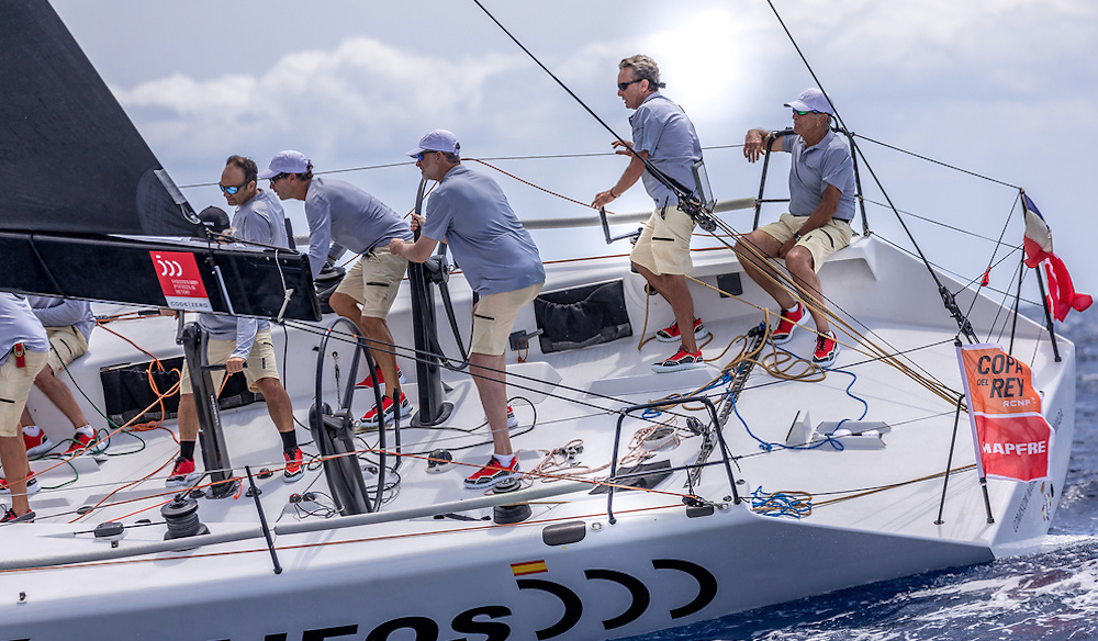 La foto superior corresponde a la prueba de Clubswan 42 y en la de abajo está SAR El Rey Felipe VI, quien comenzó la copa formando parte de la tripulación del ‘Aifos 500’, de la Armada Española, en la categoría BMW ORC1. Esta embarcación va en segundo lugar de su clasificación.