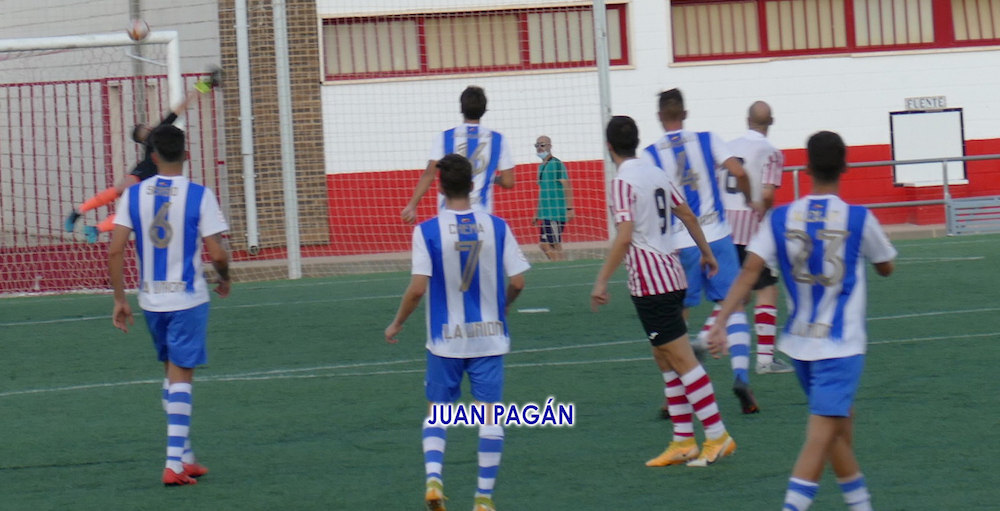 La Unión Atlético sufre la segunda derrota de una temporada en la que se han disputado cuatro jornadas al caer en el minuto 87 ante un Bullense que estrena su casillero de victorias. En la imagen, una ataque minero sobre la meta local.