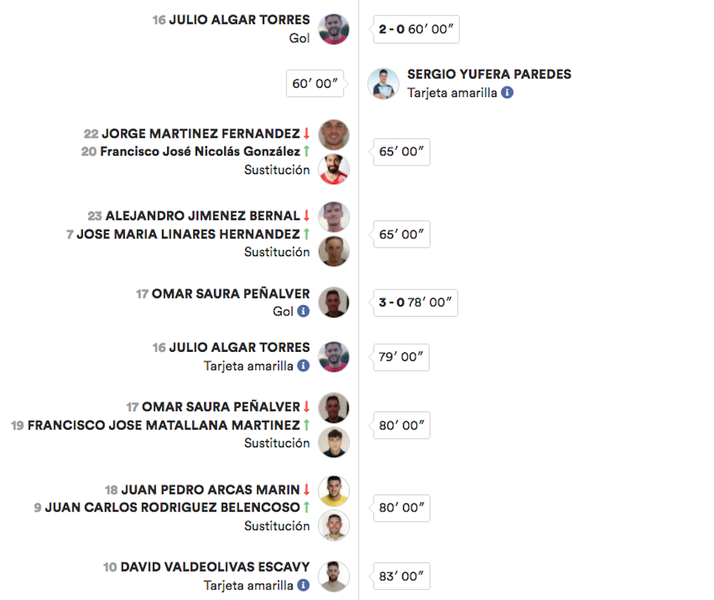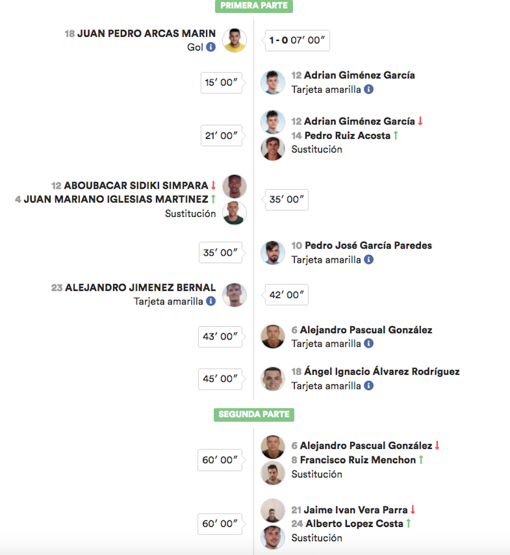 Manuel Sánchez Palomeque puso como once titular al formado por Hugo, Harri, Simpara, Julio Algar, Paco Colados, Schuster, Valdeolivas, Álex Jiménez, Jorge, Omar y Juan Arcas.