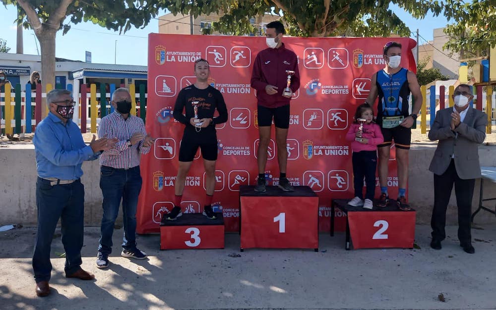 La entrega de trofeos se llevó a cabo en el interior del polideportivo, donde toda la mañana un muy buen ambiente de convivencia deportiva. Asistieron el alcalde de La Unión, Pedro López; el concejal de Deportes, José Solano; y el presidente de la Federación Regional de Triatlón, Diego Calvo.