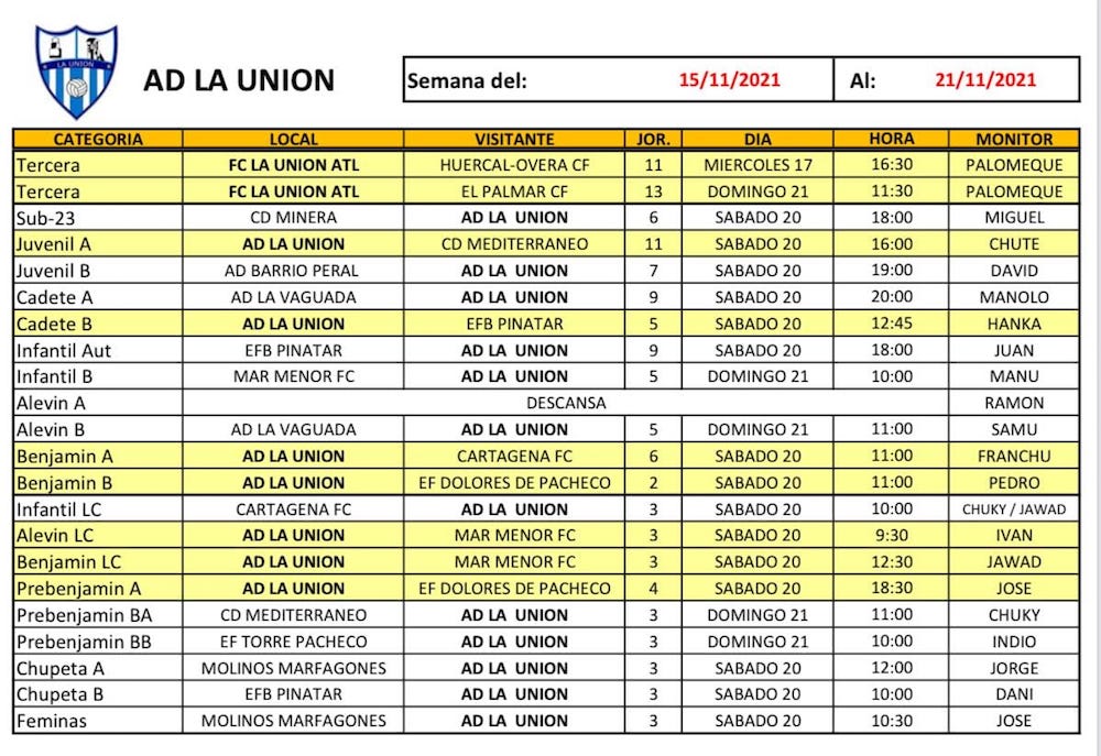 Agrupación Musical La Unión ofrece este sábado tarde el concierto con motivo de la festividad de la patrona de la música, Santa Cecilia. En el deporte ofrecemos horarios y fechas de la AD La Unión y del Portmán Atlétic de fútbol base, CD Vedruna de fútbol sala y CB Sierramar de baloncesto, equipo del que ofrecemos la foto del conjunto benjamín que inició el pasado fin de semana la liga ganando a Bahía de Mazarrón.