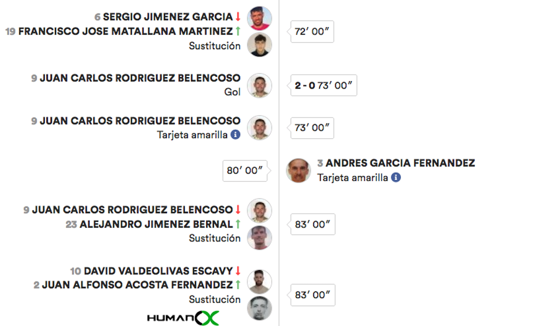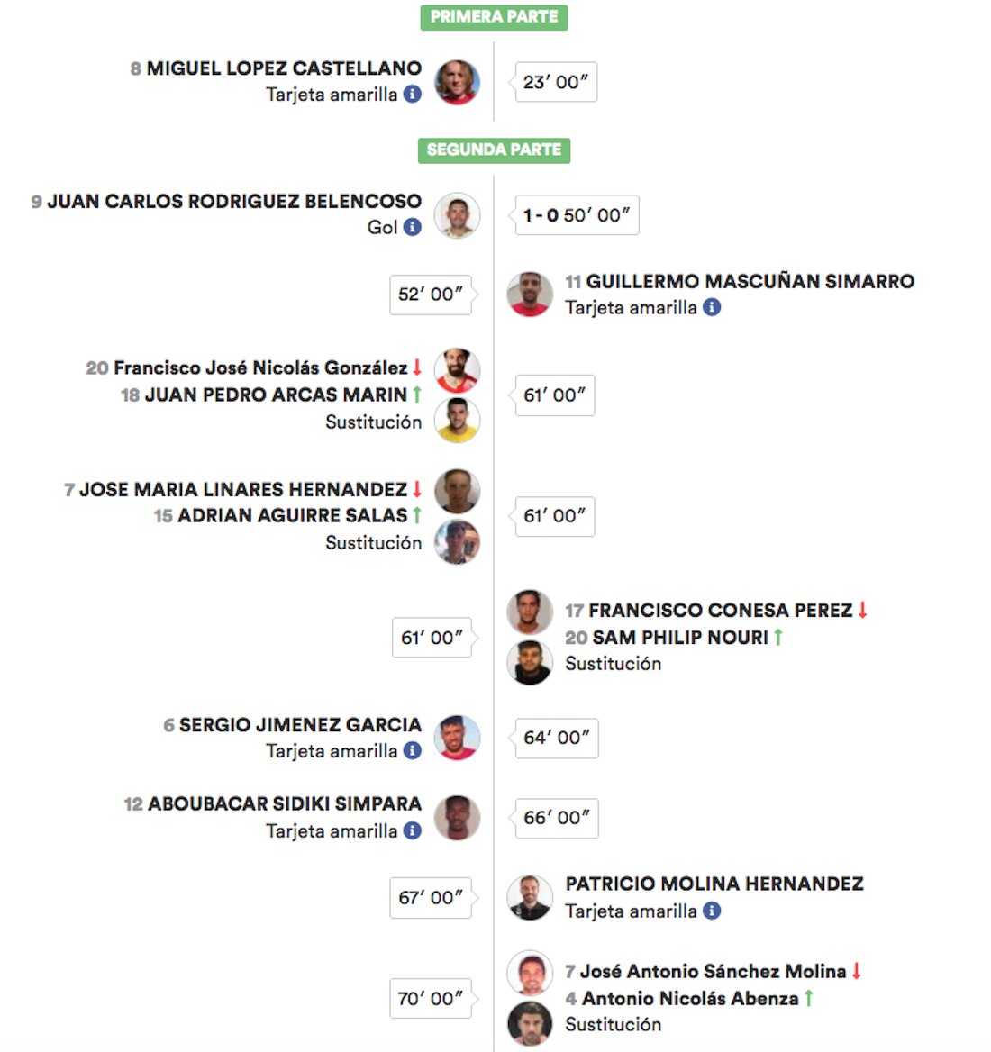 El cuadro local formó inicialmente con Hugo, Nacho Zaragoza, Simpara, Julio Algar, Paco Collados, Schuster, Sergio Jiménez, David Valdeolivas, Nico, Chema y Juan Carlos Rodríguez Belencoso, autor de los dos tantos, el primero de penalti: