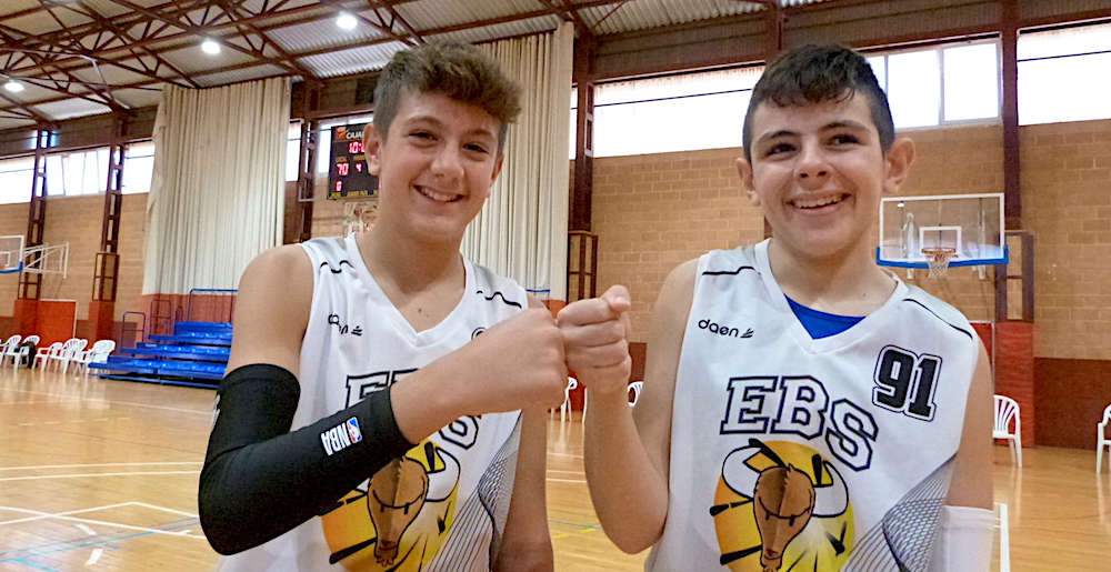 Héctor Baños Rama y Sergio Egea Manrubia son dos jugadores unionenses que juegan en el equipo de baloncesto del FC Cartagena-EB Salesianos. En la imagen posan con Antonio, Eva y Juanjo.