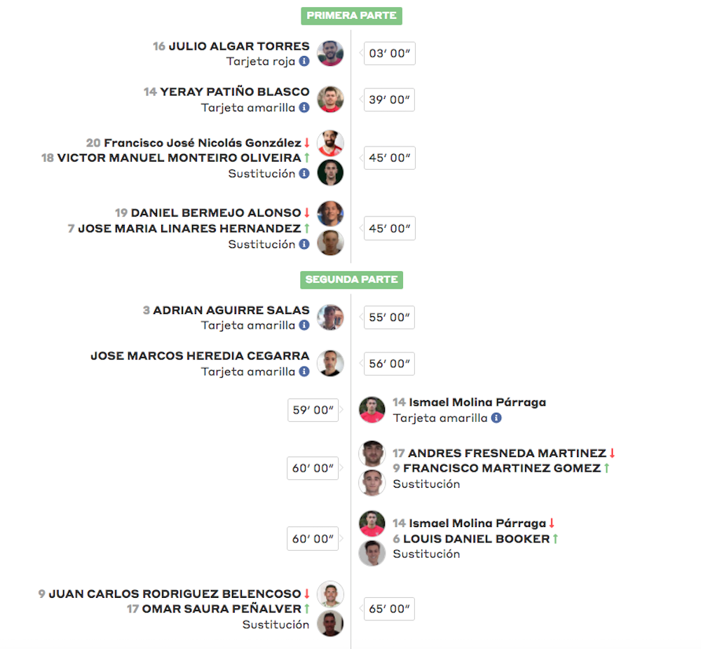 El equipo blanquiazul sufrió la expulsión del defensa Julio Algar a los tres minutos de juego, lo que, pese al esfuerzo de superación demostrado por el equipo, influyó en el devenir del partido frente al UCAM Murcia, un rival directo en la lucha por entrar en la fase de ascenso.