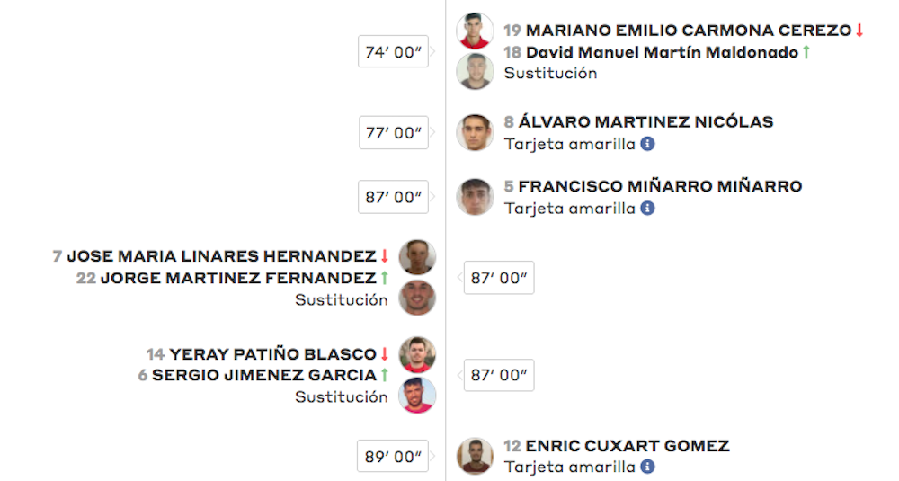 Palomeque puso como equipo inicial al formado por Hugo, Zaragoza, Algar, Simpara, Aguirre, Schuster, Yeray, Bermejo, Nico, David Valdeolivas y Belencoso.