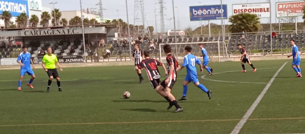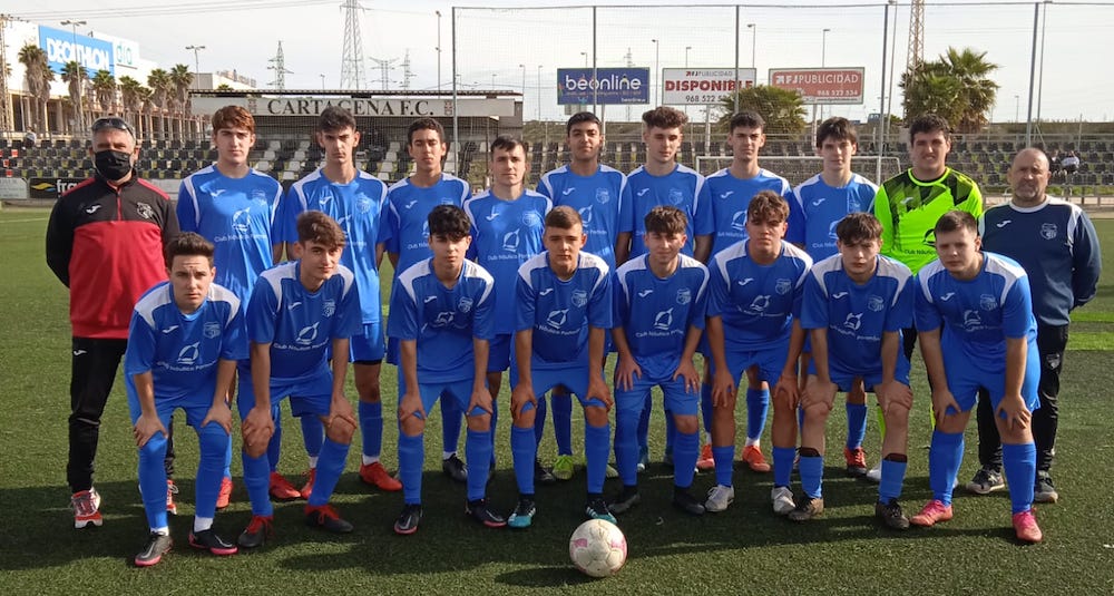 Dos goles en el primer tiempo del delantero sirvieron para el triunfo del equipo costero en el campo del Cartagena FC A y que siga en la clasificación a un punto del líder del grupo I de segunda categoría juvenil autonómica federada.