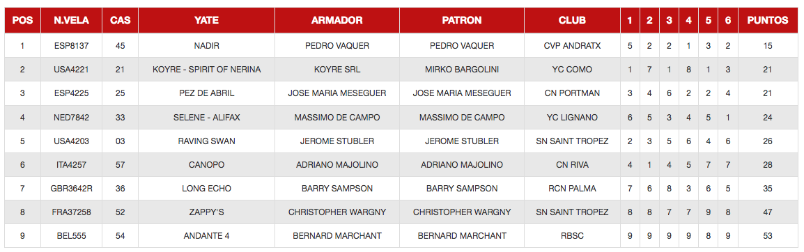 En cuanto a la clase ClubSwan 42, el ganador fue 'Nadir' de Pedro Vaquer. El recién proclamado campeón del mundo de la clase cimentó su victoria en una excelente progresión a lo largo de toda la semana. El barco mallorquín, que cuenta a la táctica con el canario Rayco Tabares, terminó la Serie Previa en quinta posición, se impuso en un duelo a tres con 'Koyré-Spirit of Nerina' de Mirko Bargolini y 'Pez de abril', de José María Meseguer, que terminaron la regata en ese orden empatados a puntos.