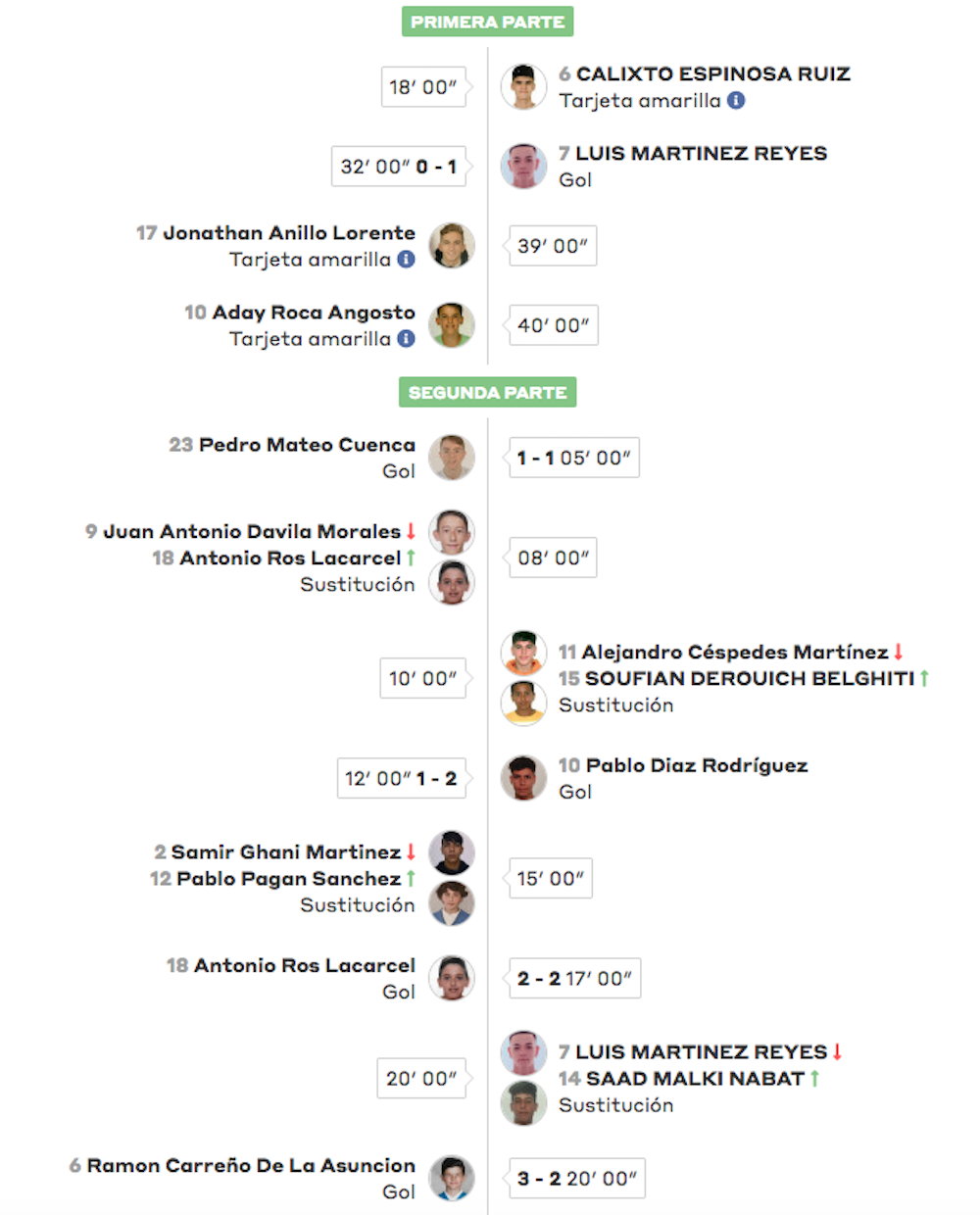 El equipo unionense comenzó con más decisión en el encuentro, donde tuvo varias ocasiones de gol, pero parecía que la suerte no estaba de su lado, a diferencia del equipo cartagenero, que sí supo aprovechar mejor sus ocasiones y se adelantó en el minuto 32, llegando con ventaja al intermedio (0-1).