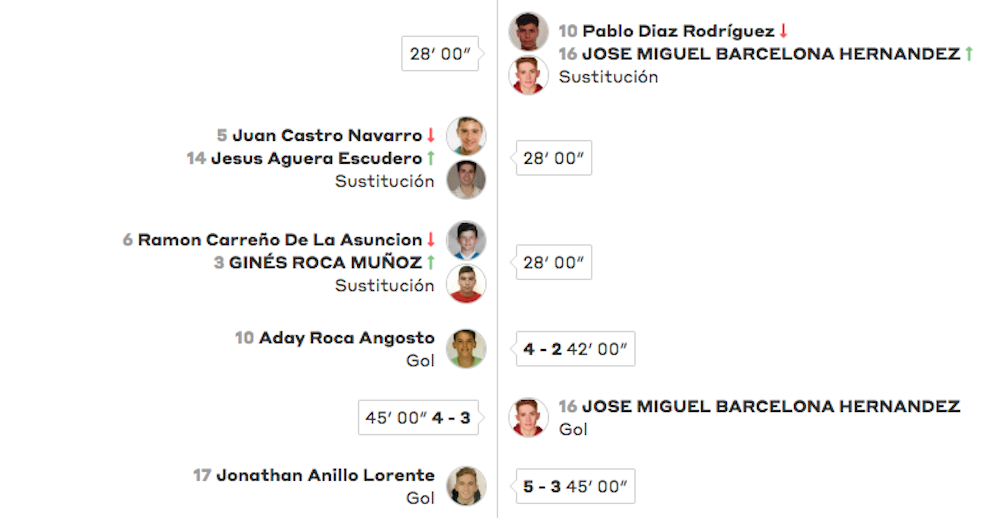 En la reanudación, la AD La Unión consiguió empatar en dos ocasiones a través de Pedro Mateo (1-1,  minuto 50) y Toni (2-2, minuto 62), logrando ponerse arriba del tanteador cuando Ramón puso el 3-2. Era el minuto 65 y ya estaría el cuadro local siempre arriba en el marcador ante un rival que nunca se rindió. Aday parecía dar tranquilidad con el 4-2 (minuto 88), pero Barrio Peral volvió a amenazar al colocar el 4-3 (90+1). Los temores fueron disipados cuando un minuto más tarde marcó Jonathan.