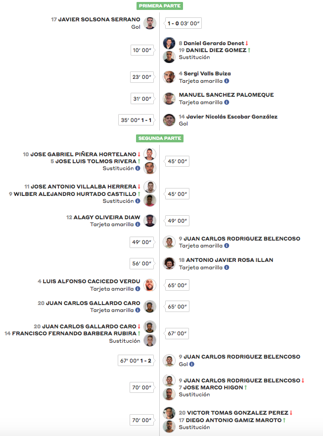 Varios cambios en el once inicial. Javi Rosa debutó con la camiseta de La Unión y Dani Denot sumó su primera titularidad. El encuentro comenzó de la peor manera posible con un gol tempranero de Javi Solsona a los cuatro minutos de juego. Peores noticias llegarían posteriormente con la lesión de Denot al poco de empezar que hizo dar entrada a Dani Díez.