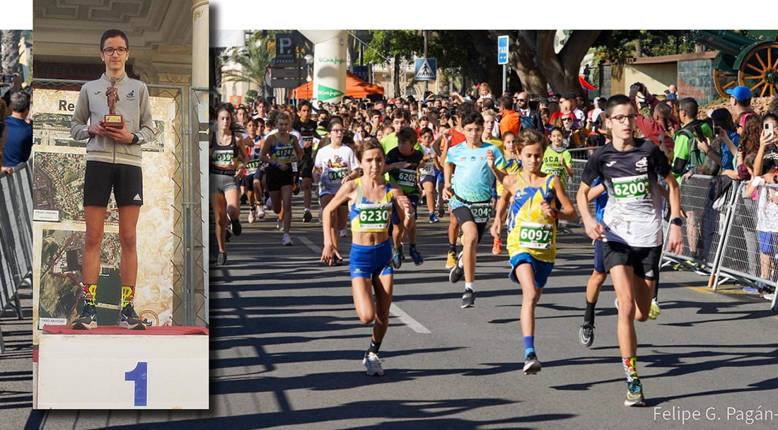 El corredor del Club Atletismo de La Unión se impone en la milla infantil disputada en el XIX Cross de Artillería de Cartagena, donde Marina Martínez ha logrado un brillante cuarto puesto alevín.