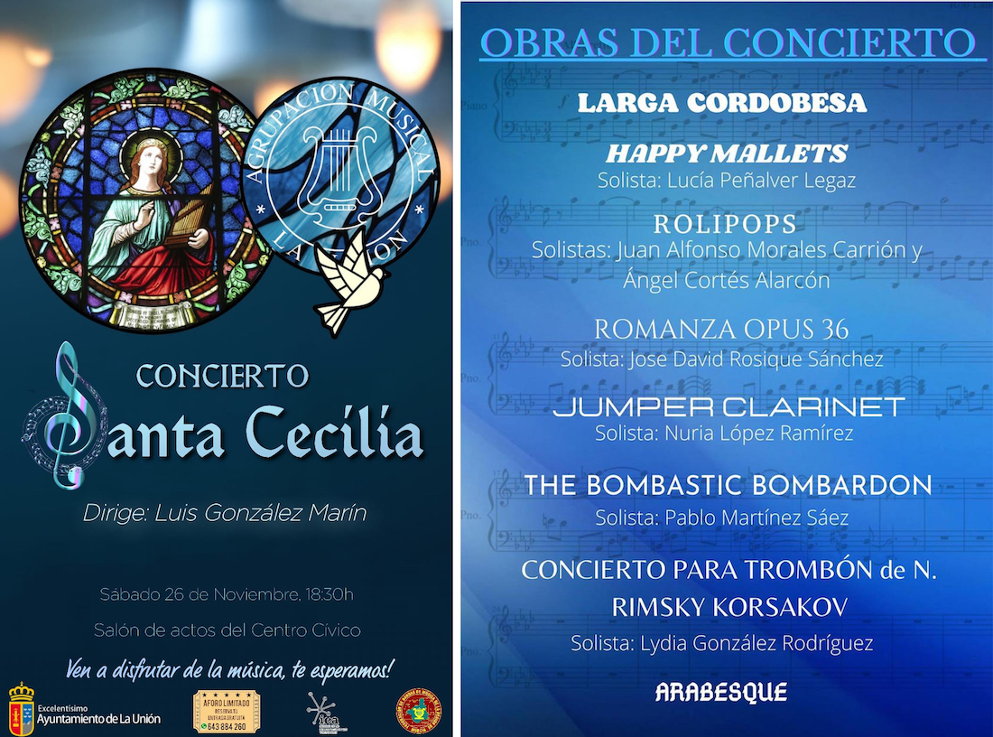 Fechas, horarios y rivales de los equipos de La Unión Atlético, Portmán Atlétic, CD Vedruna, CB Sierramar y Surmenor en las competiciones autonómicas durante este fin de semana, donde otro gran foco estará en el concierto por Santa Cecilia que la Agrupación Musical Santa Lucía ofrecerá este sábado en el centro cultural 'Asensio Sáez'.