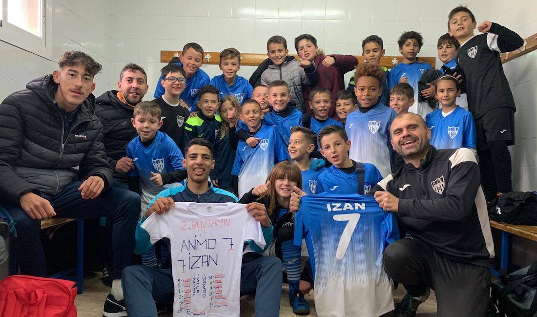 Dos fotografías tomadas en los vestuarios de equipos de la AD La Unión en los últimos días. Por un lado, el conjunto cadete LC lanza un 'stop al racismo'. En la otra, la plantilla benjamín muestras su apoyo a Izán y lo anima a que se recupere pronto.