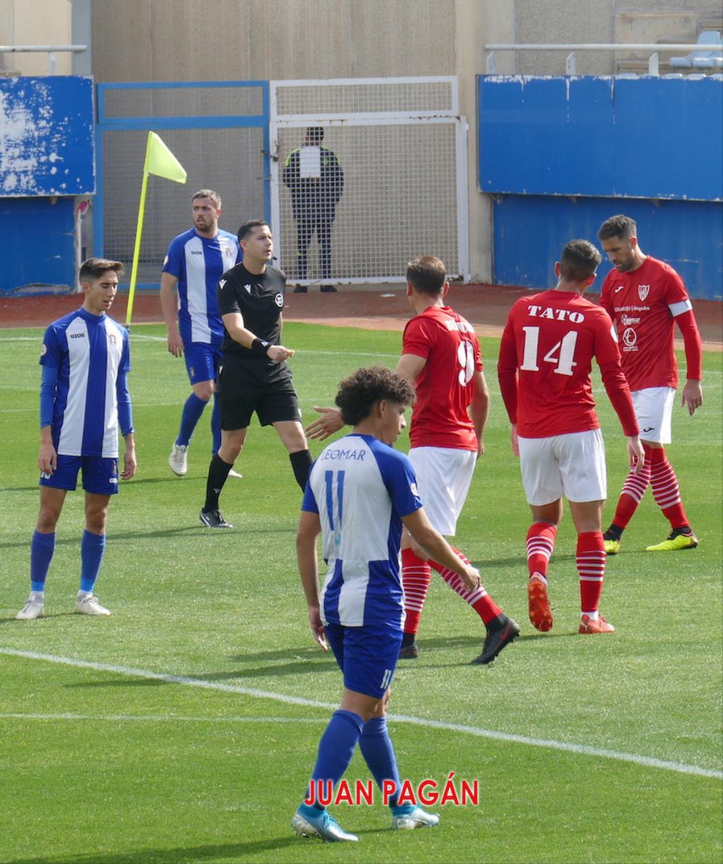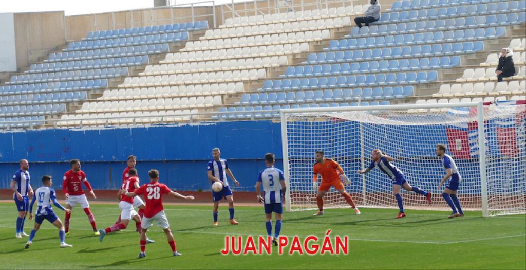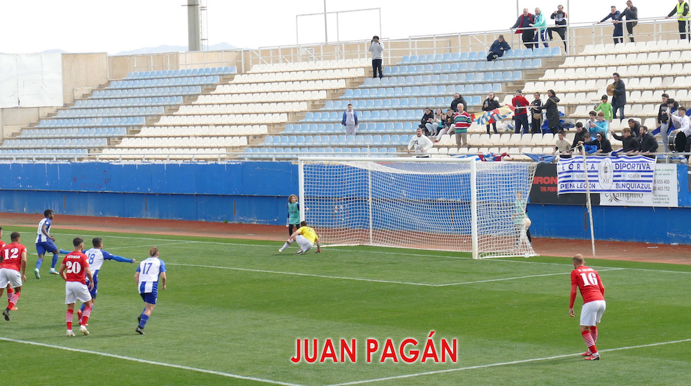 Los blanquiazules salieron enchufados y desde el minuto uno fueron a por el partido. La primera ocasión saldría de las botas de Tato, que en el área recortó y pegó con su pierna zurda, evitando el meta el 0-1. Pocos minutos más tarde, un defensa lorquino salvó en la línea de gol un cabezazo de Belencoso.