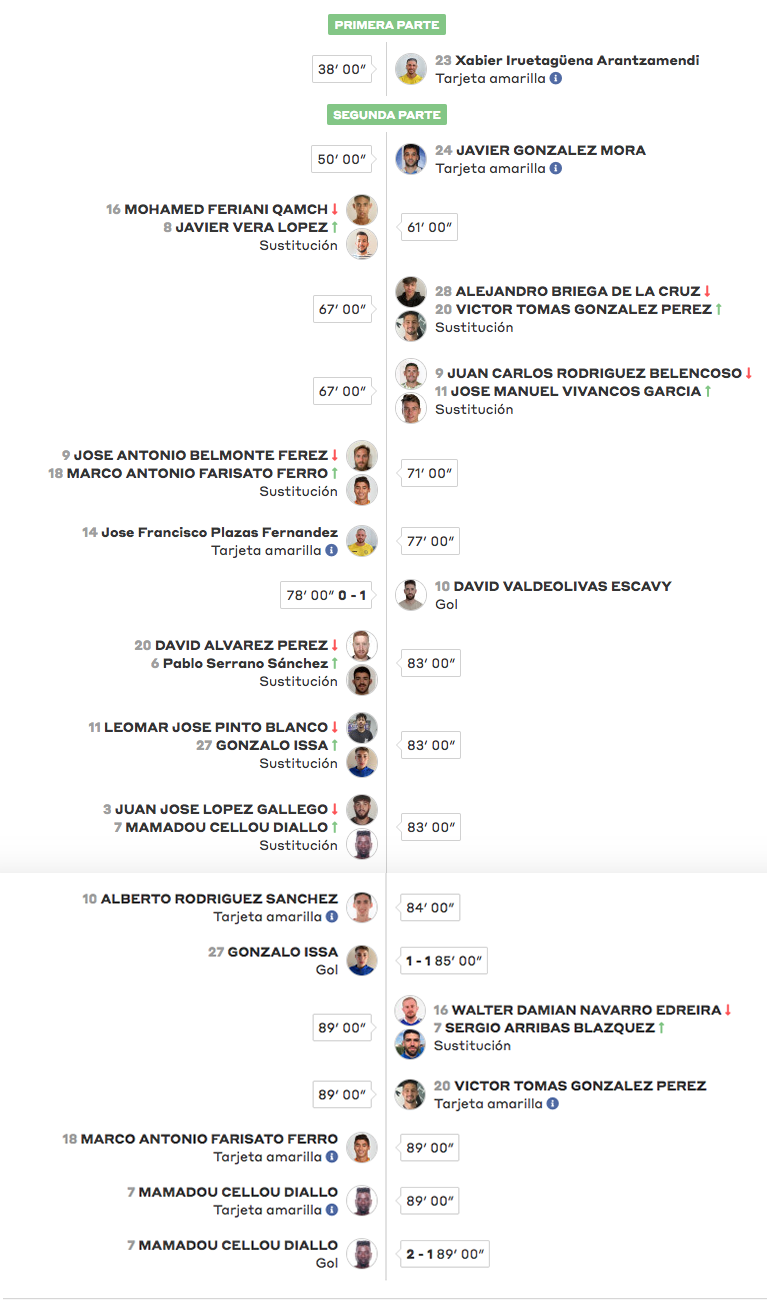 El míster introdujo un doble cambio para dar entrada a Vítolo y Josema, en detrimento de Briega y Belencoso. El delantero que llegó en el mercado invernal provocó el segundo penalti del encuentro tras ser derribado en el área a los 78 minutos de juego. Esta vez el encargado de ejecutar la infracción fue Valdeolivas. El capitán no falló y venció al meta para poner el 0-1.