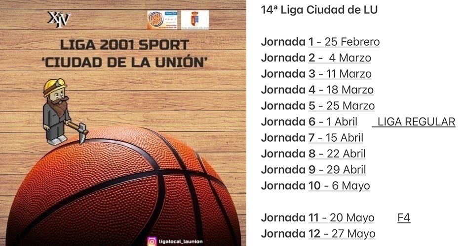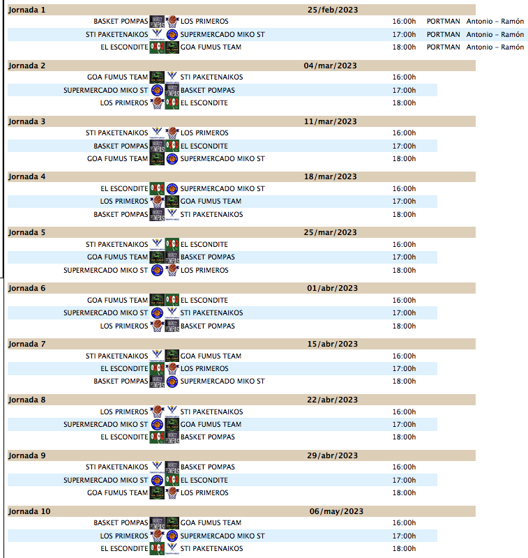 - Los partidos se jugarán los sábados por la tarde en el pabellón de La Unión o Portman (según disponibilidad).
