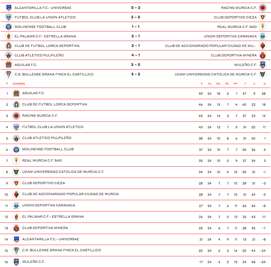 La Unión llegaba tras seis jornadas sin ganar (tres empates y tres derrotas consecutivas), por lo que necesitaba ganar 'como el comer', pero resulta que se enfrentaba a un equipo que acumulaba cinco sin vencer. Al final fueron los locales los que recuperaron la sonrisa tras a un triunfo resuelto en la primera media con los goles de Josema y de Montesinos tras sendos centros de Sergio Arribas. Pese a la victoria, el equipo sigue cuarto al no fallar Lorca y Rácing Murcia, los rivales directos en esta recta final para meterse en la fase de lucha por el ascenso a la segunda federativa.