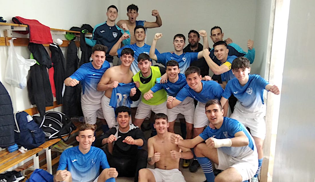 El equipo juvenil ya lleva cuatro jornadas consecutivas de victorias y una de las escuadras cadete goleó en San Javier, con el consiguiente júbilo final en el vestuario, como se observa en la imagen superior. De las categorías menores destaca las 'manitas' de goles firmadas por Rubén en la victoria del prebenjamín y de Álvaro para el conjunto chupeta.