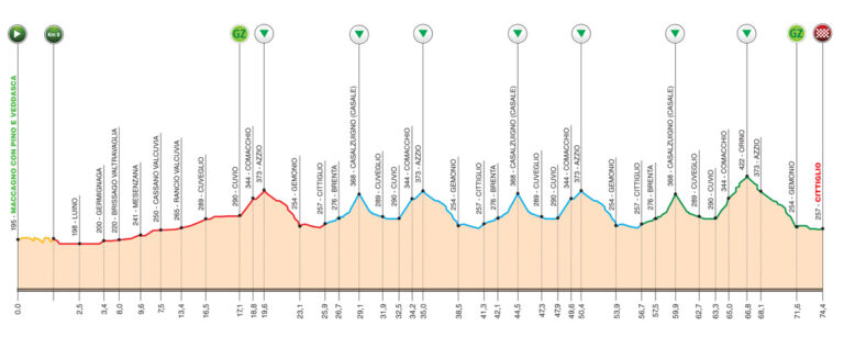 El Piccolo Trofeo Alfredo Binda, en el que el pasado año Lucía Ruiz finalizó tercera, constará de 74 kilómetros que partirán desde Maccagno con Pino e Veddasca. El pelotón realizará 26 km hasta Cittiglio, donde realizarán dos vueltas a un circuito antes de afrontar los diez kilómetros finales en los que la subida a Orino está llamada a ser la encargada a ser juez de la resolución final.