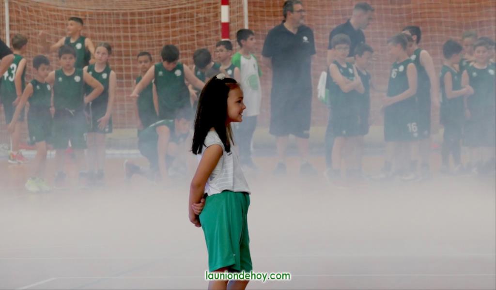 Ocho escuelas y diez equipos federados fueron saliendo entre los aplausos de los espectadores, la mayoría familiares y amigos de los jugadores, siendo 114 y 82 los baloncestistas respectivos de ambos grupos. Destaca también que tras una década hay una escuadra exclusivamente femenina y que el conjunto preinfantil masculino compareció con los trofeos de subcampeones regionales conquistados por la mañana.