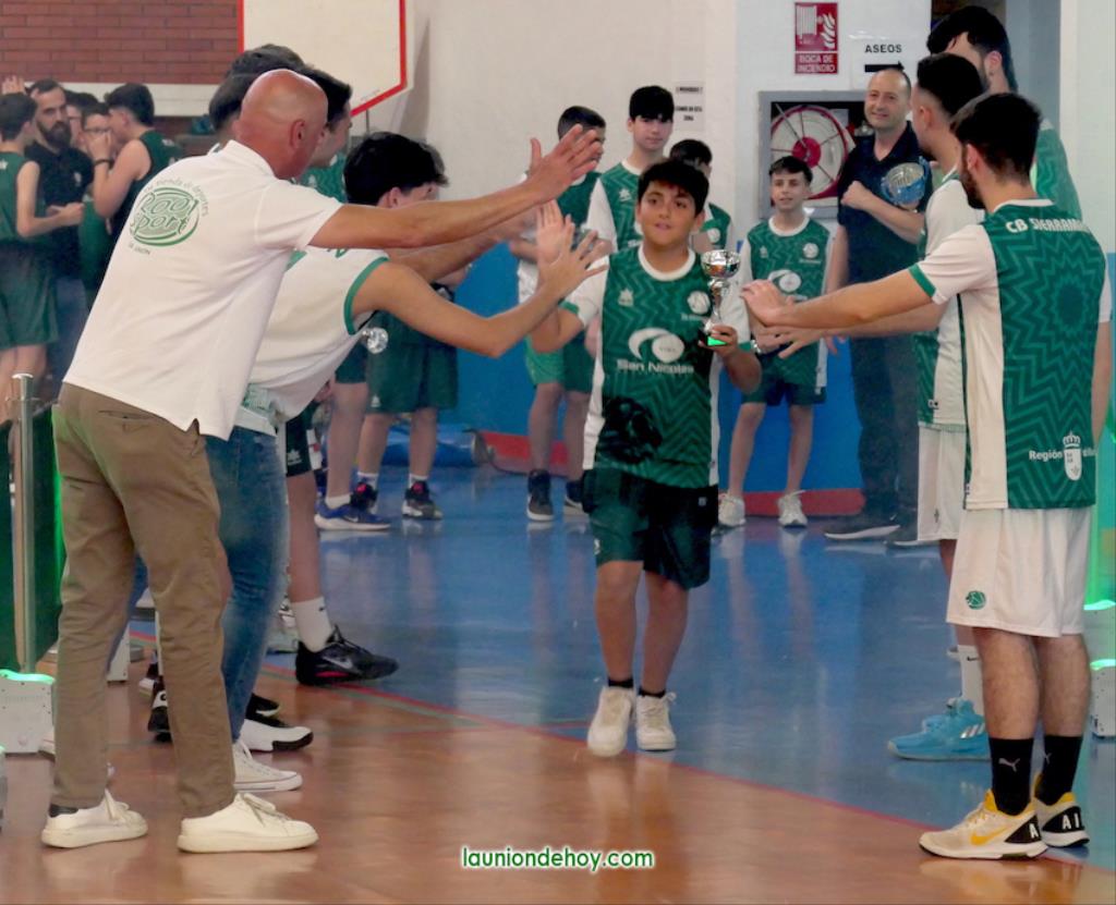 El acto también contó con la entrega de un trofeo con el león del escudo del club a los que acaban su etapa en el CB Sierramar esta temporada.