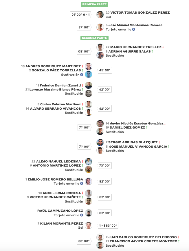 Pocos minutos más tarde, el técnico algareño se vio obligado a realizar una sustitución para dar entrada a Aguirre debido a un golpe sobre Mario que le impidió seguir sobre el terreno de juego. Belencoso pudo hacer el segundo pero su remate en el interior del área se marcha por encima de la meta local.