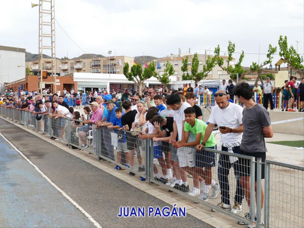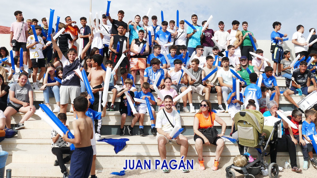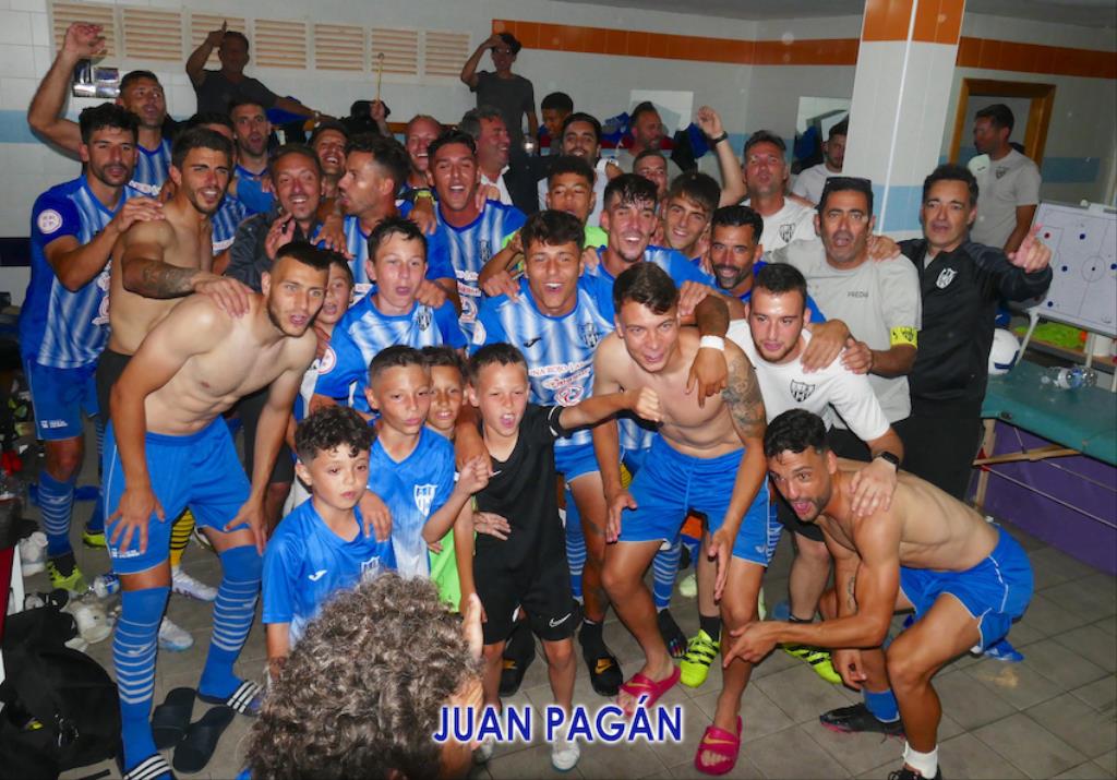 Una multitudinaria fiesta-convivencia en el polideportivo con final feliz al ganar La Unión Atlético al Rácing Murcia (3-2) y seguir el equipo minero avanzando en la lucha por subir a la segunda federativa. Juan Pagán ofrece escenas del partido combinadas por el gran ambiente en las gradas, entre cuyos asistentes también estaba el alcalde, Pedro López, además del júbilo que se desató en el equipo blanquiazul en el vestuario tras el pitido final.