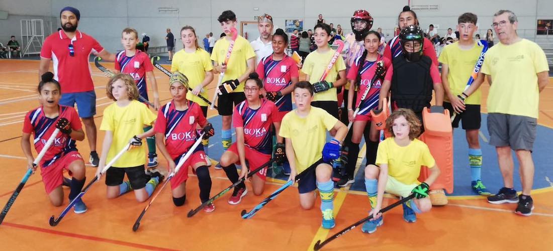 El pabellón escolar una magnífica jornada con los cuatro clubes que trabajan las categorías de promoció en la Región de Murcia; Sazaton, Santomera, Hockeymur y el club unionense del Atticus.