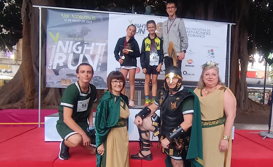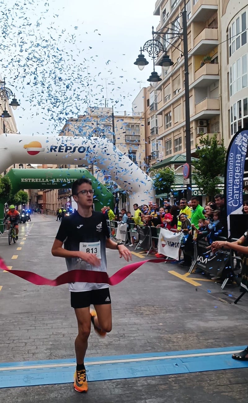 El atleta unionense logró la victoria en la prueba 'Jóvenes guerreros' disputada sobre dos kilómetros en la V 'Night Run-Arx Asdrubalis, que organiza la Federación de Tropas y Legiones de Carthagineses y Romanos en Cartagena, y que también contó con la participación de otros tres representantes del Club Atletismo La Unión, entre los que Ainhoa Salas ganó en alevín femenino.
