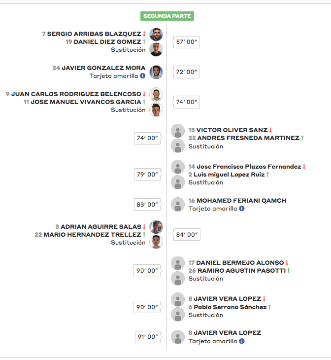 Manuel Sánchez Palomeque, entrenador local, puso como once inicial el formado por Irureta, Aguirre, Sergi, Monty, Sergio, Arribas, Belencoso, Davie Valdeolivas, Walter, Vitolo y Javi Grillo.