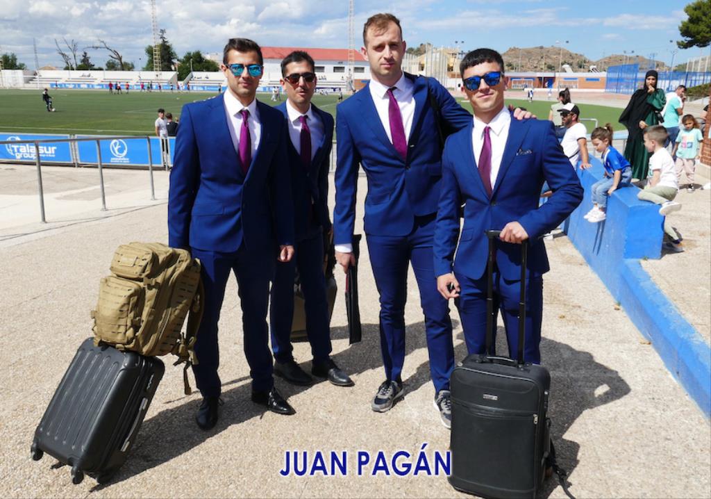 Si gana el club minero, quedará sólo una eliminatoria para estar en segunda RFEF la próxima temporada. De la fiesta 'FanZone' de hoy, destacar que el club cambió de ubicación los lugares donde estaba el dj, la barra y donde se elaboraban los grandes arroces. También resaltar la eufórica bienvenida al equipo, como se observa en las fotos, donde también se ve al cuarteto arbitral con traje y corbata.