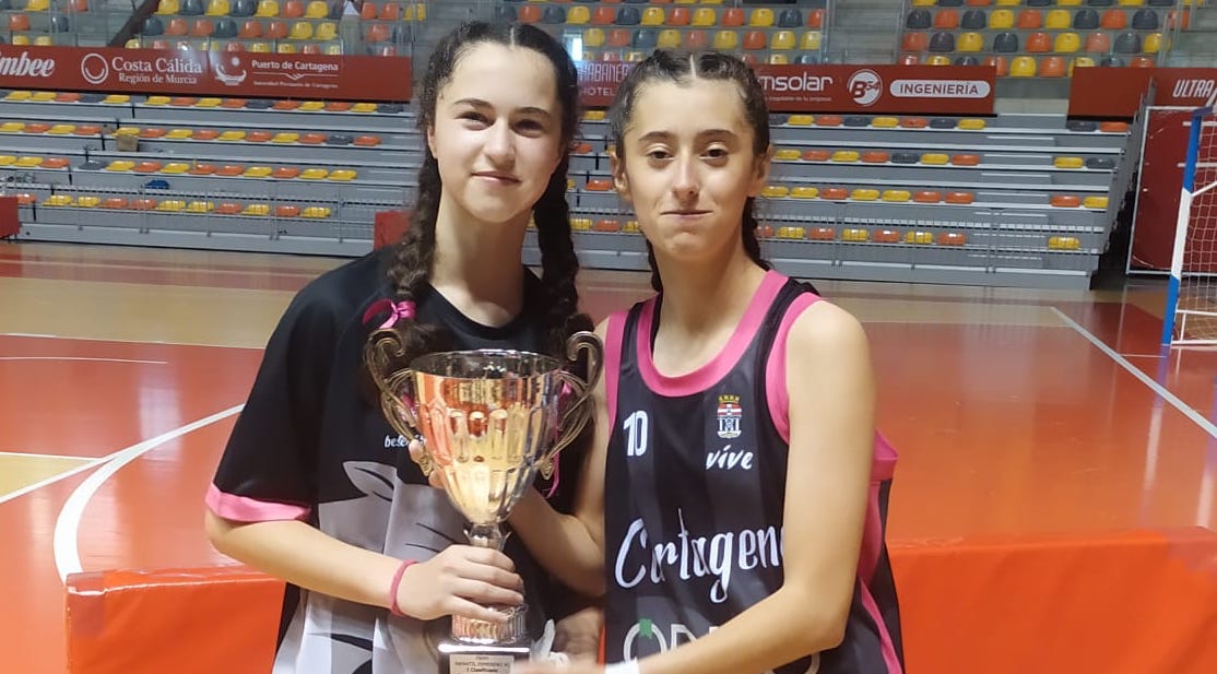 El equipo cartagenero jugó la final autonómica contra el TCA MB de Molina de Segura. En la foto, las dos jugadoras formadas en las bases del CB Sierramar con la copa.