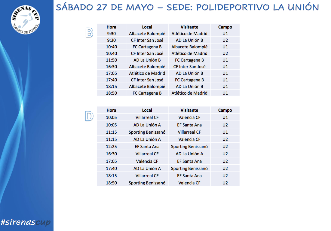 El macro campeonato de fútbol base comienza hoy con la categoría benjamín, con 15 equipos distribuidos en 5 grupos que juegan sus partidos en los campos Gómez Meseguer de Cartagena y polideportivo de La Unión, donde estarán Atlético de Madrid, Albacete, Villarreal, FC Cartagena, Valencia y, entre otros, los dos conjuntos de la AD La Unión.